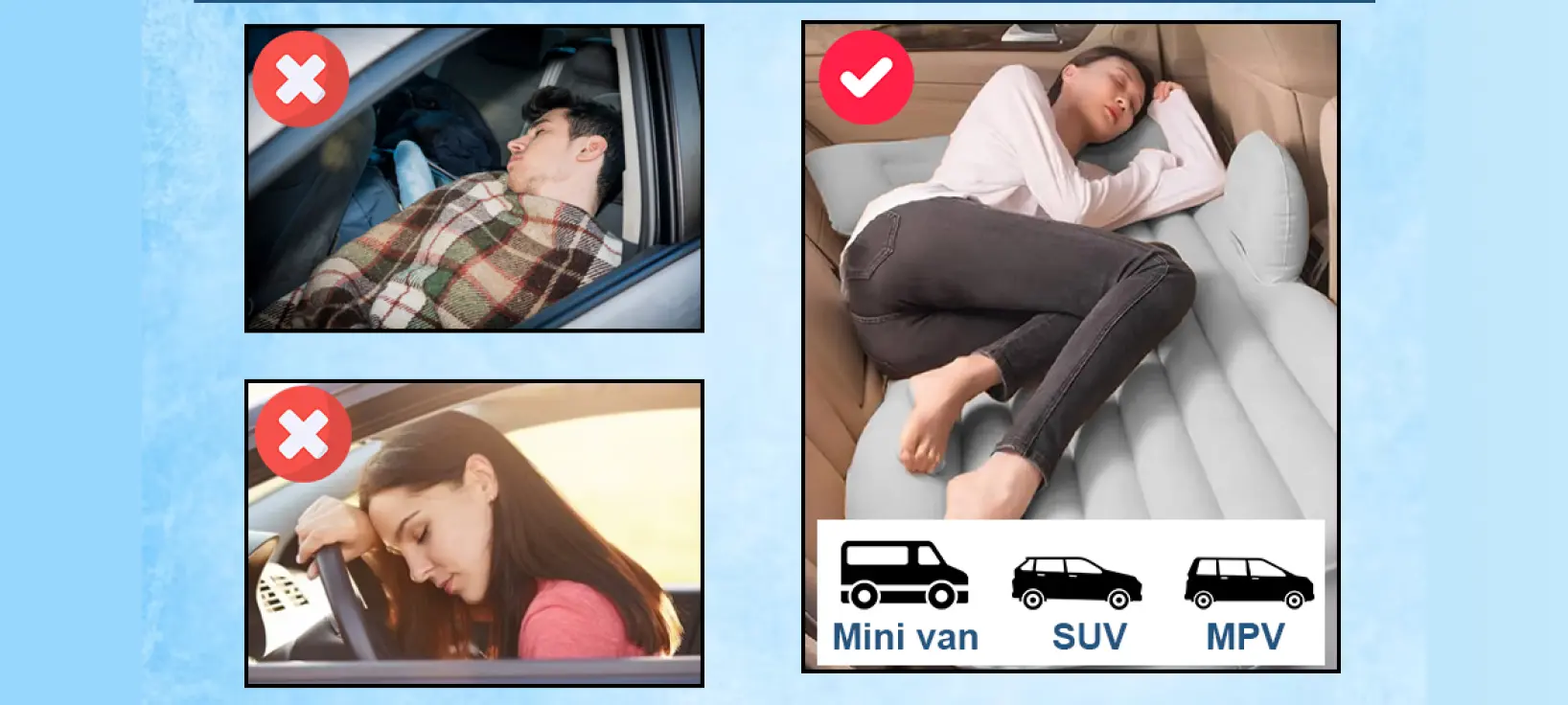 Provides the most comfortable lying experience for both adults and kids during long drives.